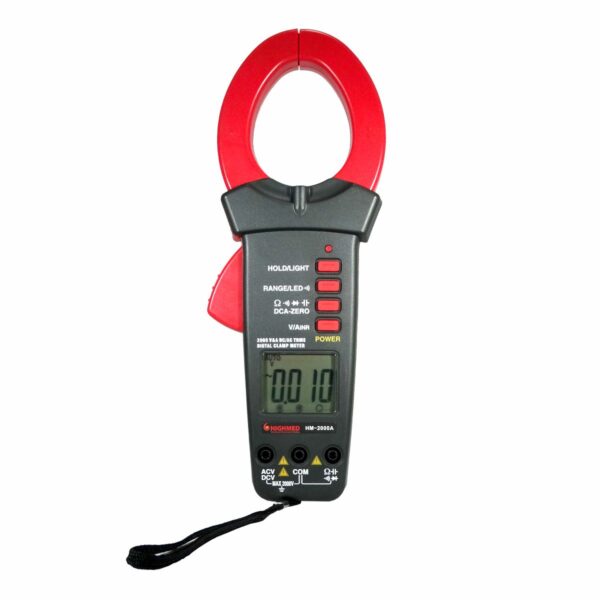 HM-2000A é um medidor de corrente digital inteligente até 2000A para corrente AC e até 2000V para tensões AC/DC, indicado para aplicações em painéis fotovoltaicos.